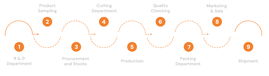Our dedicated team focuses on researching innovative designs, premium fabrics, and evolving market trends, emphasizing garment design and pattern development. Cultural insights and regional preferences are integrated to create collections that resonate globally, ensuring products remain relevant and aligned with client needs worldwide.